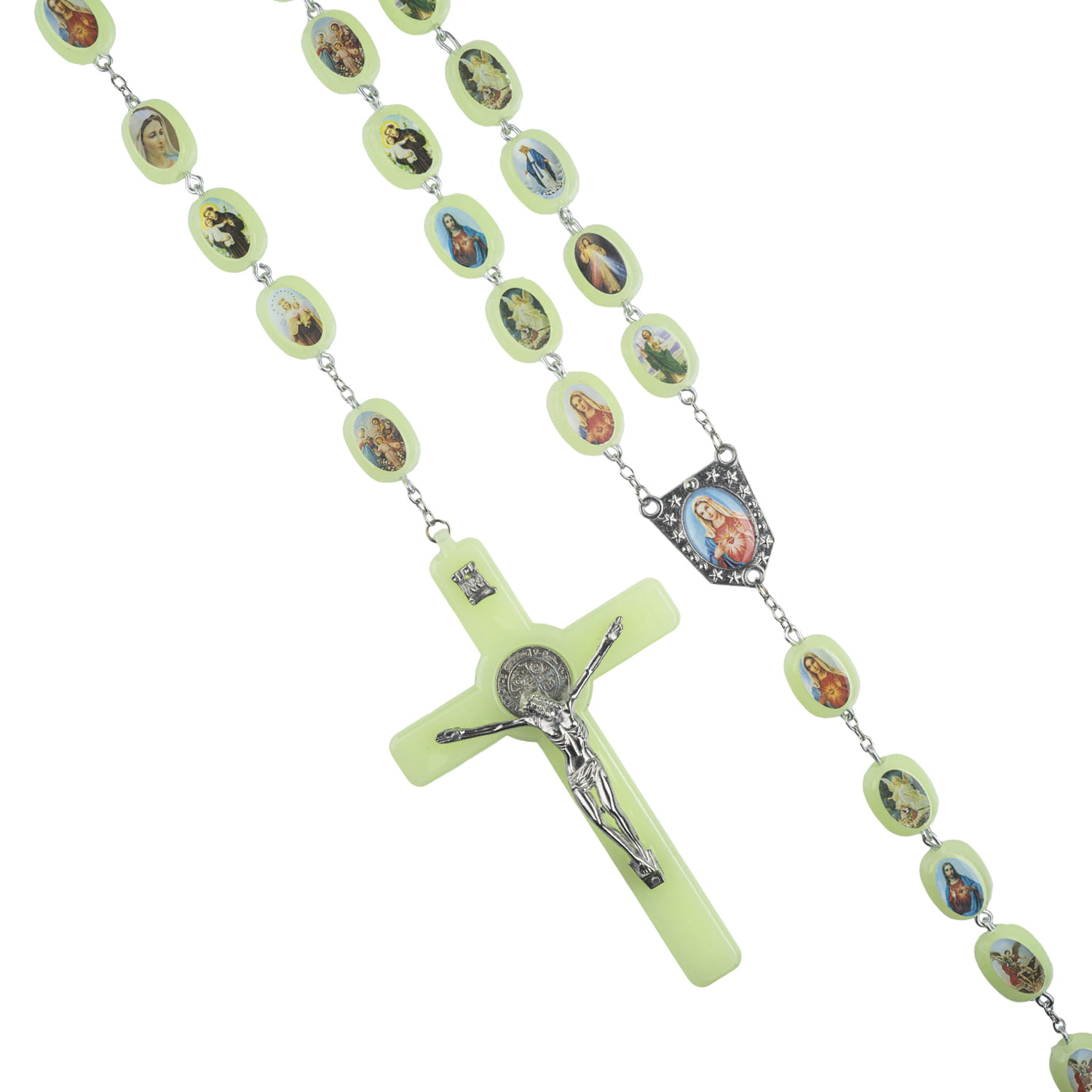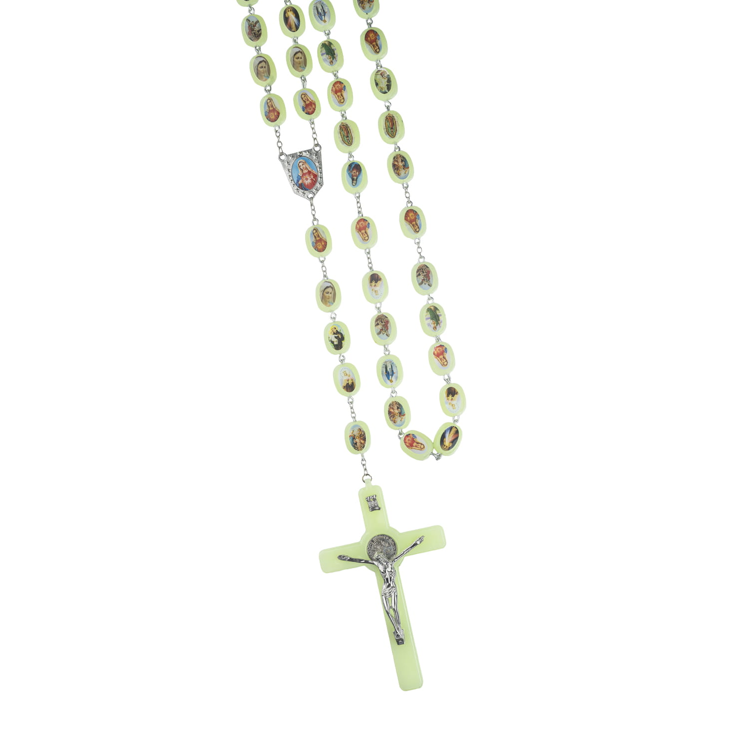 Chapelet - plastique - 2,5 cm - fluorescent - images de saints
