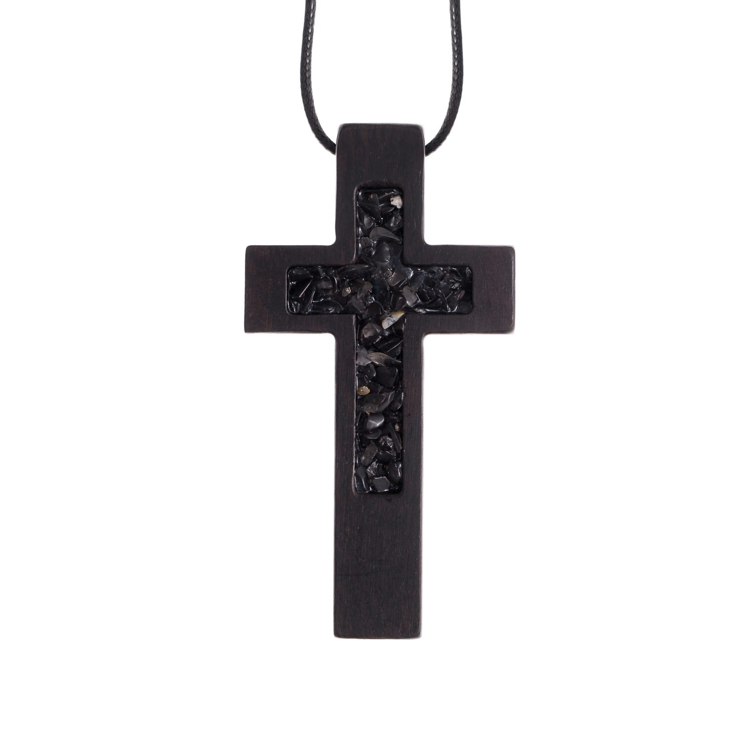 Collier - croix - pierre naturelle - bois