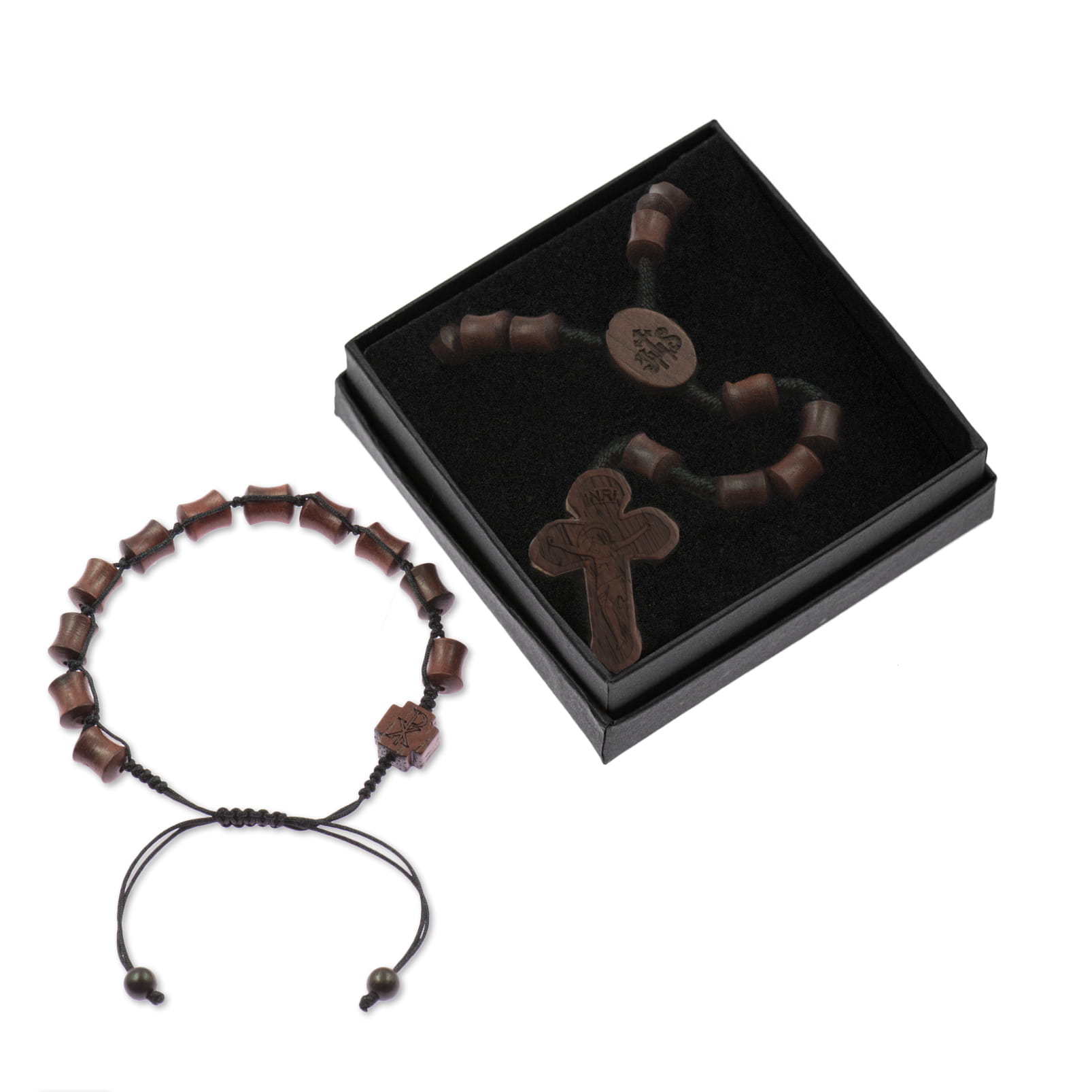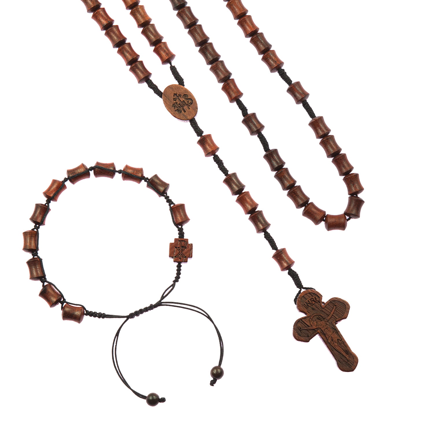 Ensemble - chapelet - bracelet - bois de rose (mukula) - Legno
