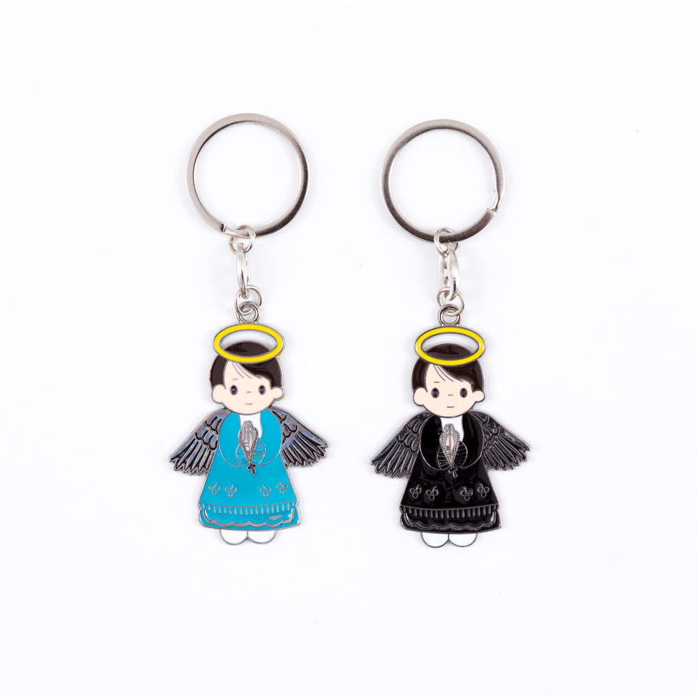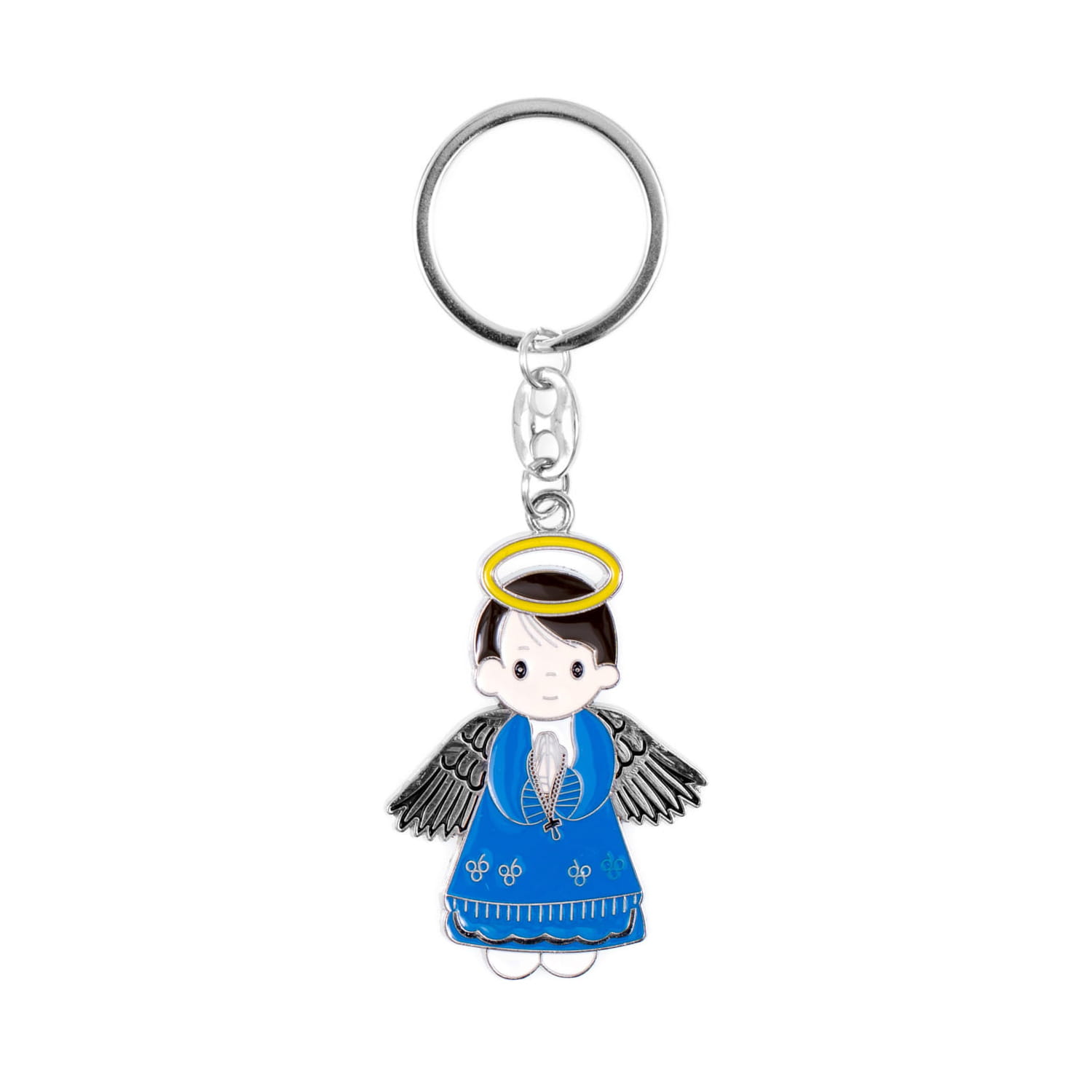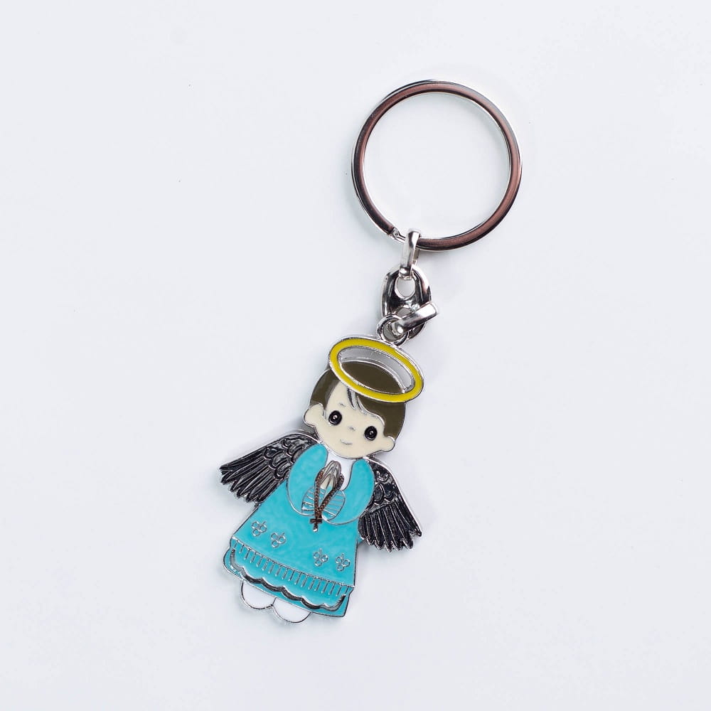B21-506AC #brelok #klucze #gadzet #suwenir #upominek #pamiatka #podarunek #metal #dlakatolika #religijny #aniolek #prezent #podziekowanie #dzieci #chlopiec #dekoracja #ozdoba #niebieski #czarny #blekitny #zolty #pomaranczowy #rozaniec #modlitwa #aureola