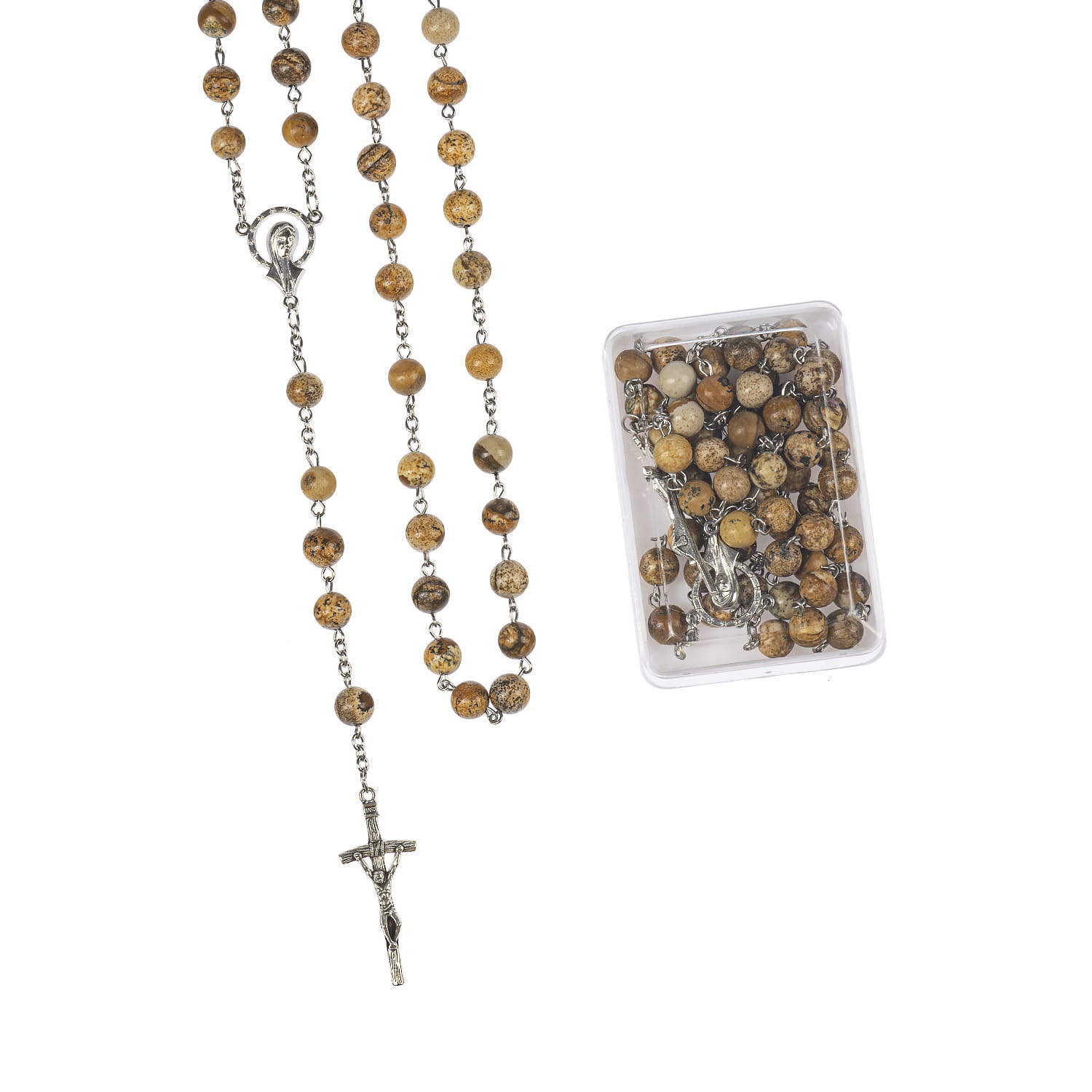 Różaniec - jaspis - 8 mm - kamień naturalny - pudełko